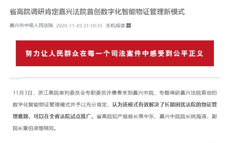 據(jù)統(tǒng)計,物證管理平臺試運行1個月以來,嘉興市范圍內(nèi)累計騰空物證倉庫5個,涉及面積500余平方,釋放庫存物證3000余件。