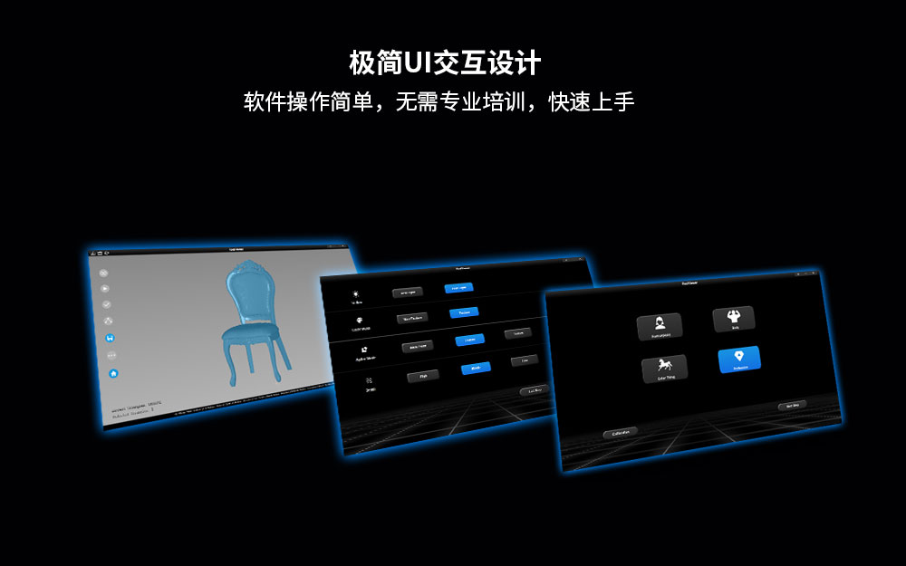 智能可調(diào)補(bǔ)光系統(tǒng):根據(jù)被掃物品的特性,選擇開/關(guān)補(bǔ)光系統(tǒng)。當(dāng)采集人臉數(shù)據(jù)時可關(guān)閉補(bǔ)光系統(tǒng),采用紅外不可見光+無補(bǔ)光掃描模式(避免了因投影光源和補(bǔ)光系統(tǒng)頻閃給人眼帶來的不適感,實現(xiàn)了真正的人眼安全掃描),被掃人員可以睜眼接受掃描。當(dāng)掃描彩色物品時,用戶可通過打開補(bǔ)光系統(tǒng),來增強(qiáng)對物品表面紋理的捕捉能力。